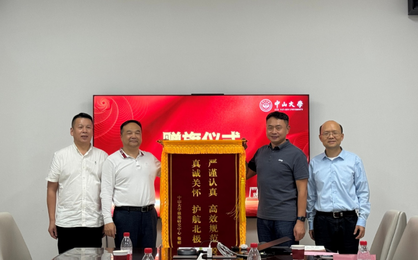 为感谢广州海事局在2024年和2025年北冰洋科考航次中提供的重要保障和有力支持,中山大学极地研究中心向广州海事局赠送了锦旗。