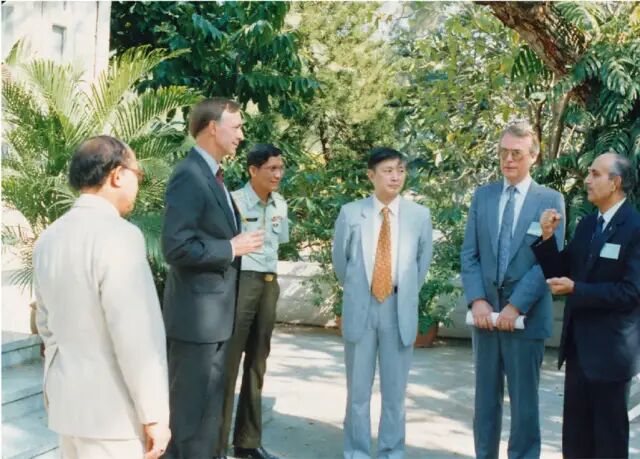1988年,陈俊勇先生(右三)在泰国参加联合国测绘会议