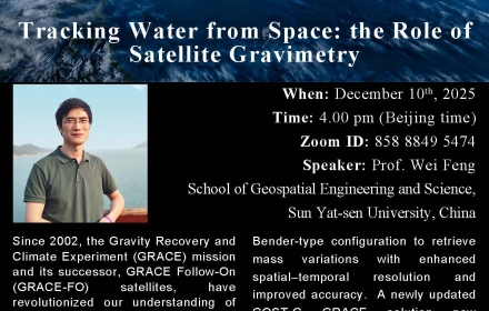 The 11th Symposium on Multi-source Observation and Interpretation of Siberia in Xinjiang, Tibet The Geodesy and Navigation Team Research achievement Infinite Horizons: December 10th "Tracking Water from Space: the Role of Satellite Gravimetry" Geophysical Research Letters | Deriving intertidal topography from SWOT data and Sentinel-2 data A simulation on relativistic gravimetry by using optical fiber backbone network in China more > Downloads more > SYSU_LRI1B APM-SYSU GRAMAT InSAR