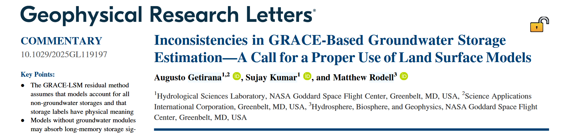 近日,美国国家航空航天局(NASA)戈达德太空飞行中心Getirana博士等人在《Geophysical Research Letters》发表评论文章,指出目前广泛使用的GRACE卫星数据估算地下水储量的方法中可能存在的概念偏差,呼吁学界需更谨慎地使用陆面模式。我们对论文做了简要翻译,以飨读者。